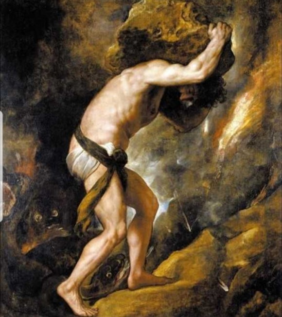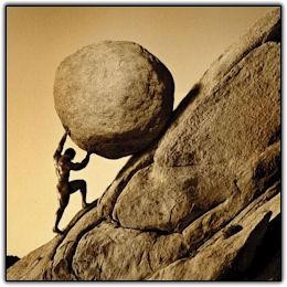 쉼 없이 산 정상으로 바위를 밀어 올리는 시시포스의
